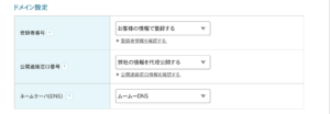 購入する際は、下記のようにドメインの設定の詳細が出ると思いますが、公開連絡窓口はムームードメインに指定するようにしましょう。